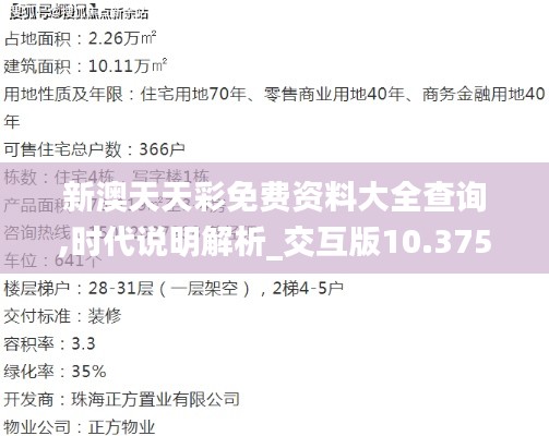 在这个信息爆炸的时代,掌握准确的政策文件和资料是每位澳门居民和投资者不可或缺的需求。为了适应这一新的时代要求,“新澳天天彩免费资料大全查询,时代说明解析_交互版10.375”应运而生。本文将深入分析这一交互平台的重要性,并展示其在澳门政策文件查询领域的独特价值。