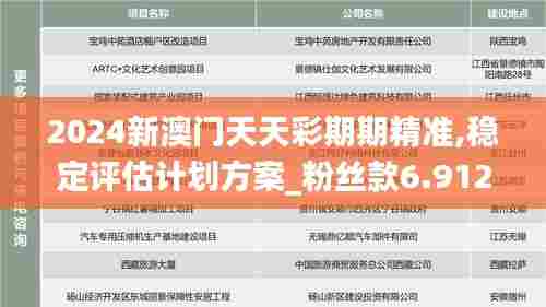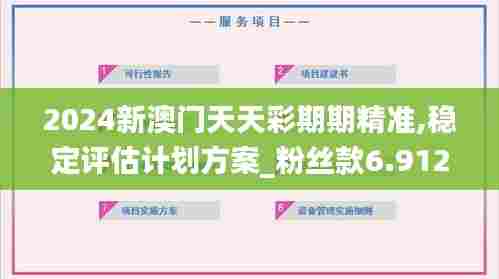 2024新澳门天天彩期期精准,稳定评估计划方案_粉丝款6.912的落地实施,将为澳门彩票市场的稳定发展注入新的动力。通过科学的评估机制、先进的技术手段与各方的共同努力,我们有理由相信澳门的彩市将会迎来更加美好的未来,为广大彩民提供更为优质的服务。同时,这一计划也将为其他地区的彩票市场提供借鉴,助力全国彩票行业的健康发展。