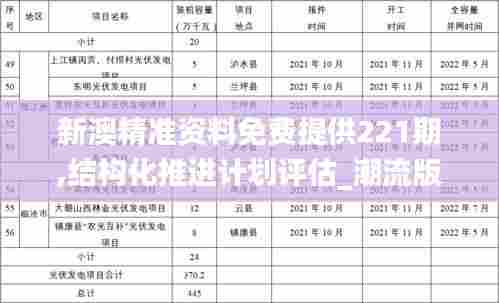 “新澳精准资料免费提供221期”项目旨在为澳门市民提供精准、及时的资料和资讯,以助于市民更好地理解来澳门的政策变化与经济动态。项目已进入第221期的阶段,每一期资料的免费发放都得到了积极的评价和肯定。随着项目的深入发展,现拟制定一份详细的结构化推进计划评估,旨在对政策效果进行科学评估,确保政策及项目实施的精准性和时效性。
